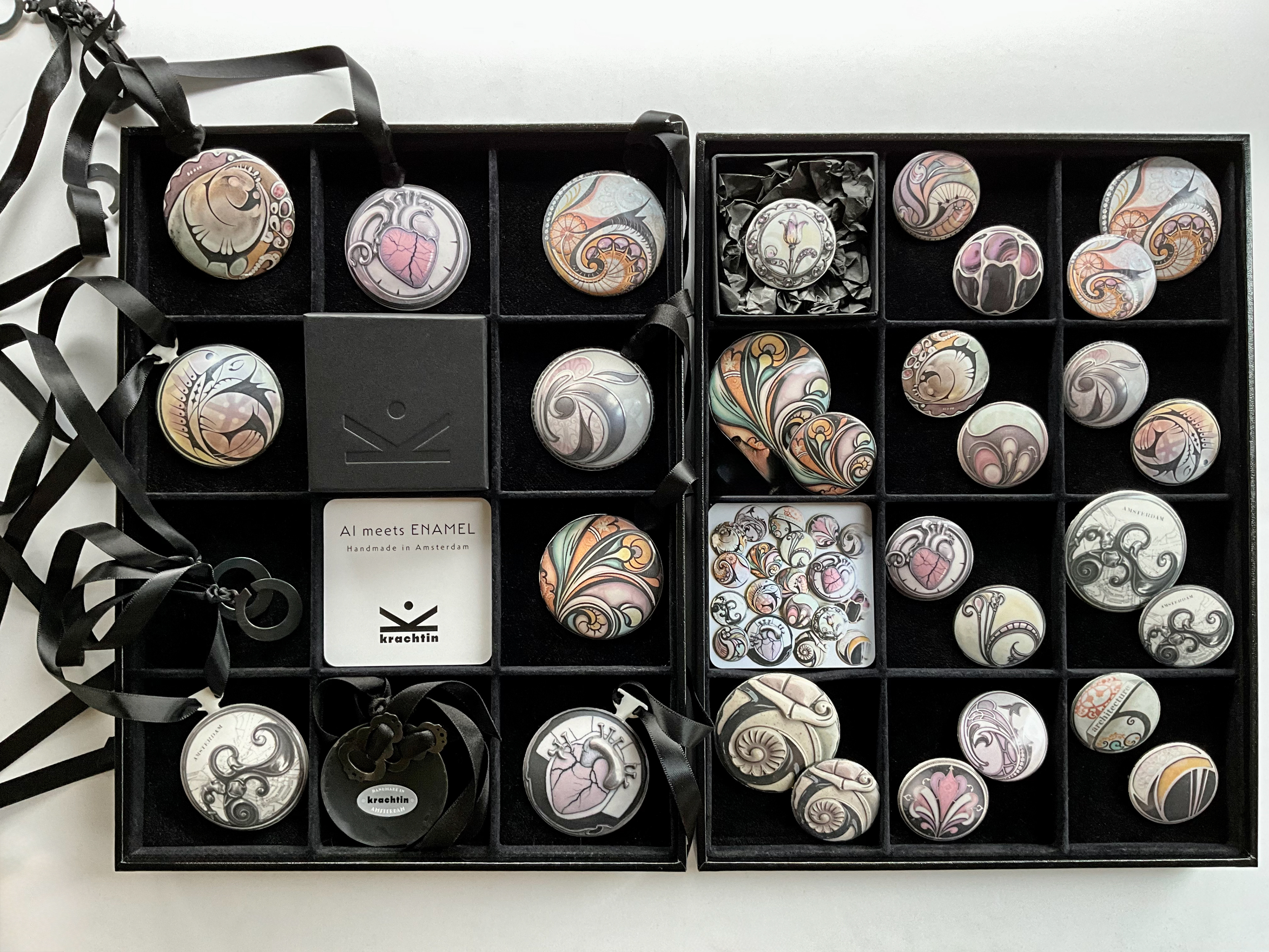 Collection of brooches and Necklaces for the museum store inspired by the exhibitions
